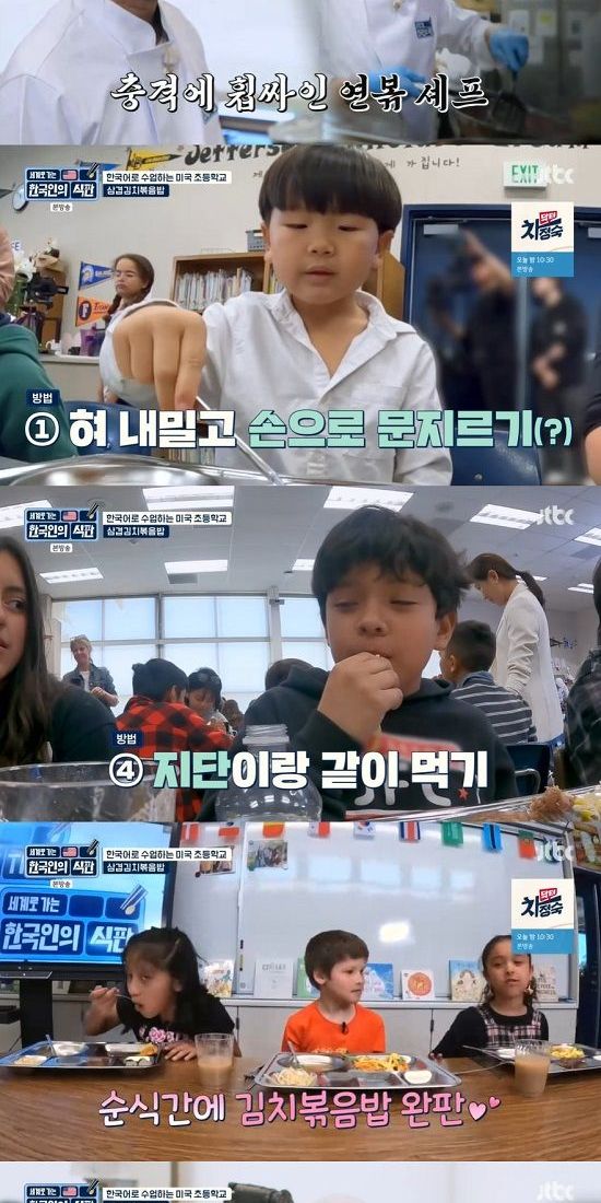 급식을 배식받은 아이들은 "나 이거 좋다", "진짜 맛있다"며 김치볶음밥 먹방에 열중했다. 하지만 이내 다수의 아이들이 "너무 맵다"며 손부채질을 시작했다.
