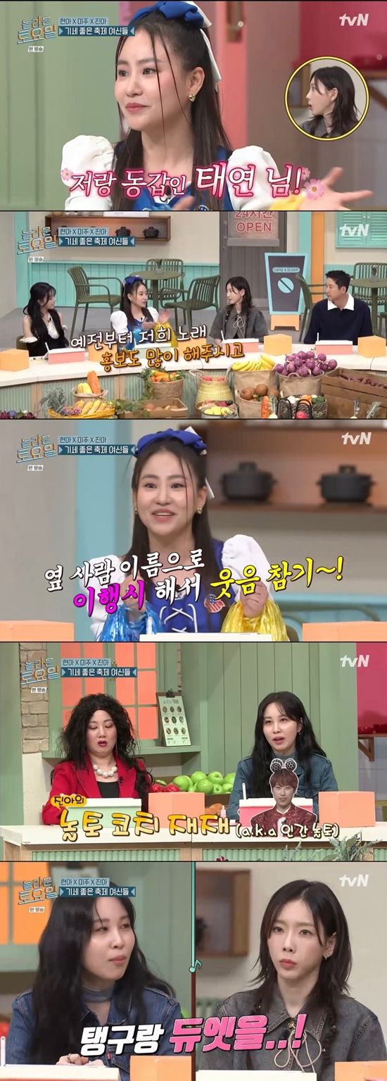 이에 조현아는 89년생 동갑내기인 "태연 님과 친해지고 싶다"고 수줍게 고백했다. 그러면서 "예전부터 어반자카파 노래를 많이 홍보해주셨다. 그간 대화할 기회가 없었는데 오늘 뵙게 돼서 좋다"고 전했다.