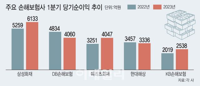 손해보험업계 빅5인 삼성화재가 올해 1분기에 순이익 6133억원을 달성했고 이어 DB손해보험이 4060억원, 메리츠화재가 4047억원, 현대해상이 3336억원, KB손해보험이 2538억원이었다. 중소형 손해보험사 롯데손해보험도 순이익이 794억원으로 사상 최대 실적을 거뒀다. 생명보험업계에서는 업계 2위 한화생명의 올해 1분기 순이익이 4225억원에 달했다.