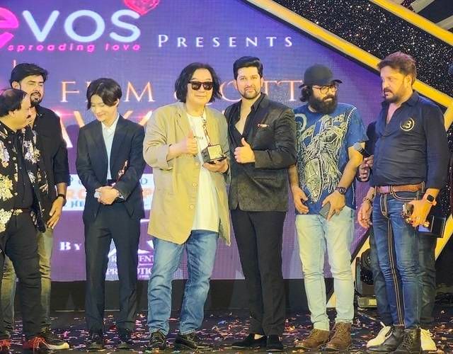 한명구 감독(가운데 선글라스)은 지난 12일 오리사인도국제영화제 제5회 'STAR FILM /OTT AWARDS 2023'에서 최우수 감독상을 받았다. 그의 오른 쪽은 인도 국민배우 몰리우드. /한명구 SNS