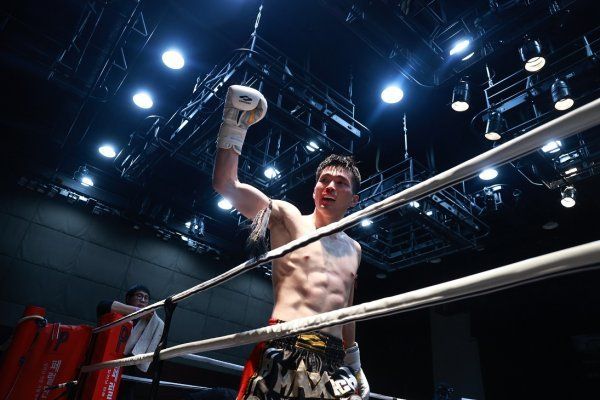 MAX FC 라이트급 챔피언 조경재가 5월 14일 일본 도쿄 오타구종합체육관에서 열린 ‘제1회 국제친선대회 킥복싱 월드컵’에서 일본 챔피언 오가와 쇼상대로 월등한 경기를 펼친 뒤 환호하고 있다. 이날 조경재는 오가와에 심판 전원일치 판정승을 거뒀다. 사진제공 l MAX FC
