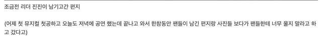 지난 13일 공연 직후 고(故) 문빈 추모 공간에 진진이 남긴 편지 / 이하 더쿠