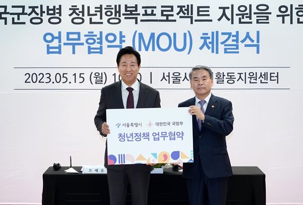 5월 15일 오전 10시 서울시 청년활동지원센터(용산구 소재)에서 열린 업무협약식에는 오세훈 서울특별시장과 이종섭 국방부장관이 참석했다.