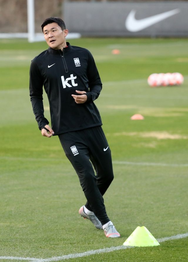 김민재가 지난 3월 26일 경기 파주 축구 국가대표 트레이닝센터(NFC)에서 훈련하고 있다.