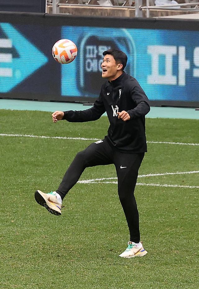 김민재가 지난 3월 25일 울산 문수 축구경기장에서 오픈 트레이닝을 하고 있다.