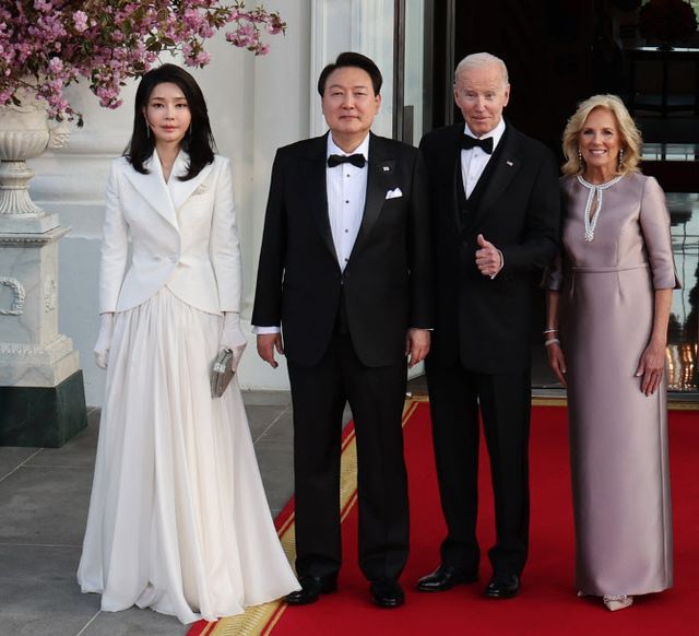 기사에는 “(질 바이든 여사가 입은) 옅은 보라색 드레스가 그를 돋보이게 할 수 있지만 손님들의 의상, 특히 clotheshorse로 잘 알려진, 폭넓은 시폰 스커트와 흰 장갑을 착용한 김 여사의 패션 감각이 돋보이게 하는 데 더 행복을 느낀다”는 문장이 담겼다.