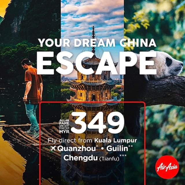 에어아시아 말레이시아는 푸젠(福建)성 취안저우(泉州)시, 광시좡족자치구의 구이린(桂林)시, 에어아시아 X는 쓰촨(四川)성 청두(成都)시와 쿠알라룸푸르를 잇는 노선을 운항하게 된다. 취안저우 노선은 6월 18일부터 주 2편, 청두 노선은 7월 1일부터 주 2편, 7월 4일부터 주 3편, 구이린 노선은 7월 18일부터 주 2편 운항을 개시한다.