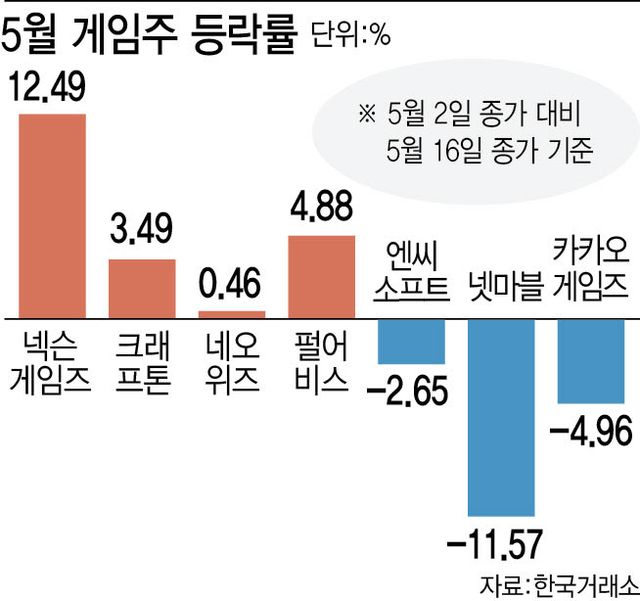 16일 한국거래소에 따르면 넥슨게임즈(225570)는 이달 들어 12.49% 올랐다. 크래프톤(259960)은 3.49%, 네오위즈(095660)는 0.46% 소폭 상승했다. 같은 기간 코스피 지수가 1% 가까이 빠지고, 코스닥 지수도 3% 넘게 하락하고 있는 점을 감안하면 선방한 셈이다.
