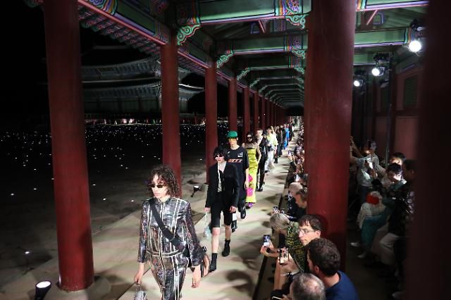 16日晚,在位于首尔钟路区景福宫勤政殿前,意大利奢侈品牌古驰(Gucci)上演2024早春大秀。景福宫勤政殿是朝鲜时代举行国家仪式的地方,是韩国现存最大的木质建筑之一,被指定为第223号国宝。