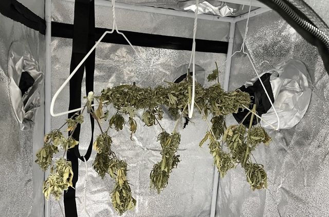 A 씨와 B 씨가 재배한 대마를 암막텐트에서 말리고 있는 현장. 제주경찰청 제공