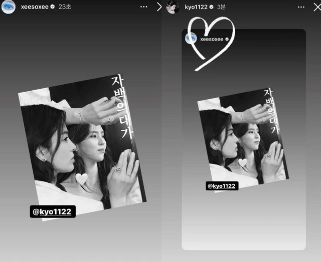 '자백의 대가' 출연 사실을 알렸던 송혜교, 한소희 인스타그램
