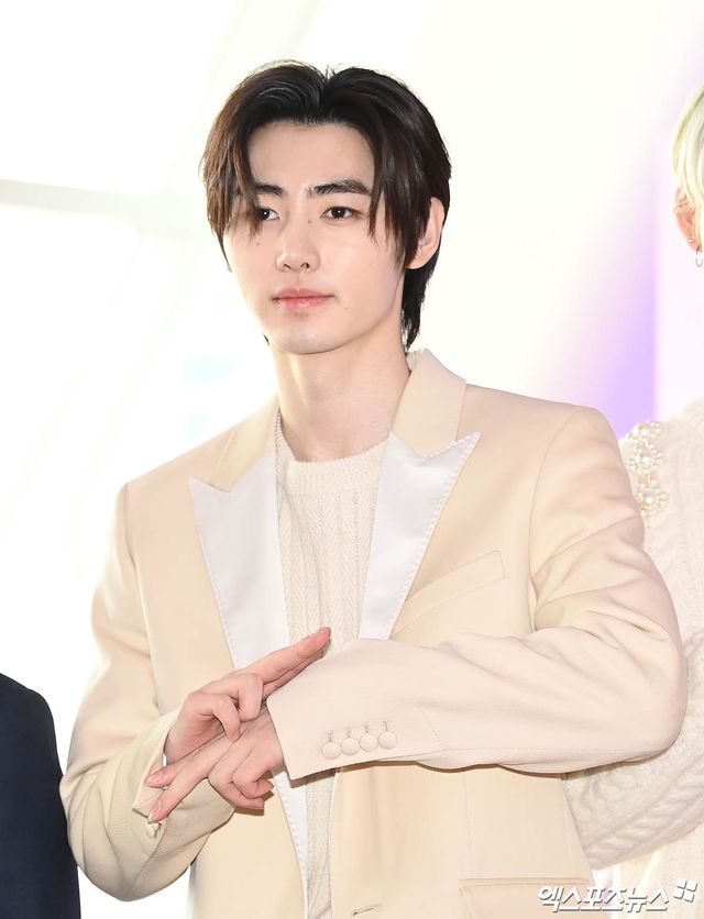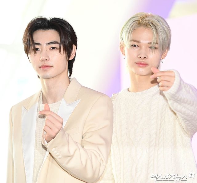 이 행사에 참석한 그룹 엔하이픈 성훈, 니키가 포토타임을 갖고 있다.