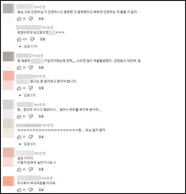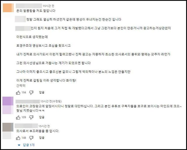 비뇨의학과 전문의 모자이크, 해당 전문의의 유튜브 채널에 달린 댓글 일부 / 유튜브