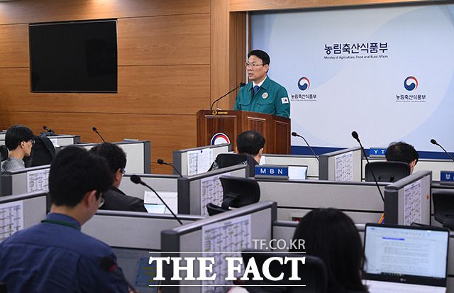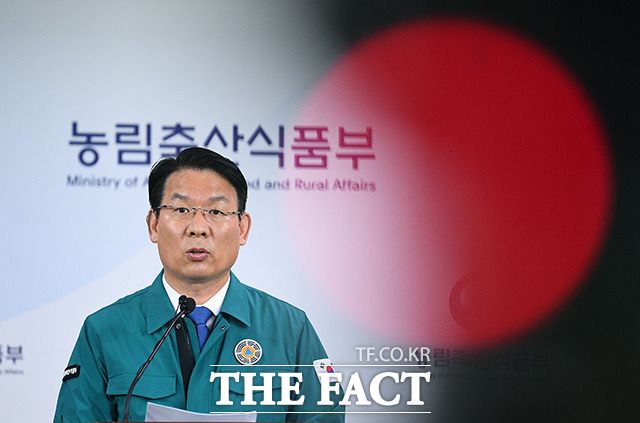 [더팩트ㅣ세종=이동률 기자] 김인중 농림축산식품부 차관이 17일 오전 세종시 정부세종청사에서 구제역 발생현황 및 방역강화 대책을 발표하고 있다.