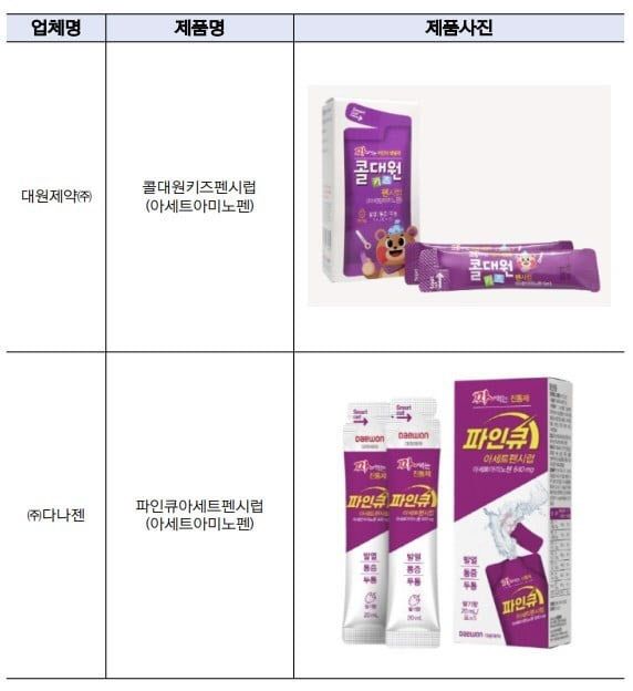 식약처는 지난 17일 이같은 상황을 밝히고 콜대원키즈펜시럽과 대원제약이 수탁 제조하는 다나젠의 ‘파인큐아세트펜시럽’에도 같은 처분을 내렸다고 밝혔다. 이에 대원제약과 다나젠은 사용기한이 남은 모든 제조번호 제품을 자발적으로 회수키로 했다.