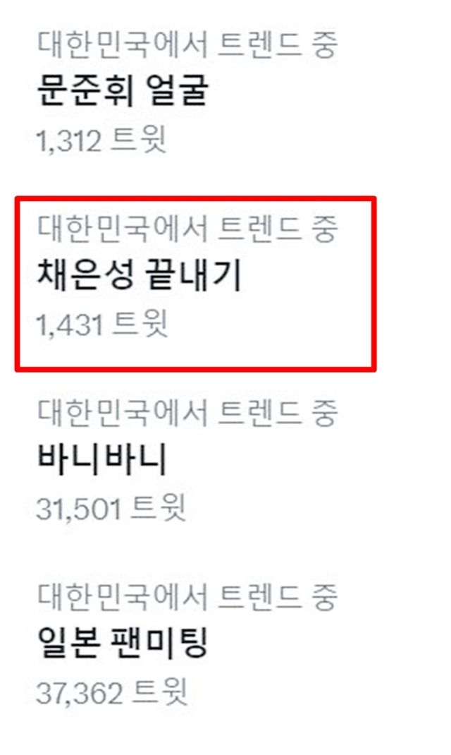 18일 오전 트위터 트렌드에 오른 '채은성 끝내기' / 트위터