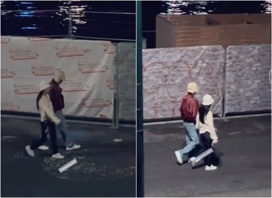 영상에는 스태프로 보이는 이들이 두 사람의 뒤를 따르고 있는 모습도 담겼다.