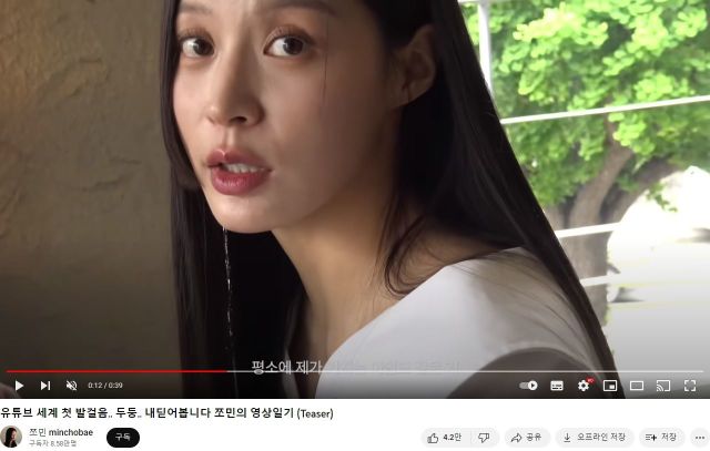 그가 올린 유튜브 영상은 39초짜리 티저 하나다. '유튜브 세계 첫 발걸음..두둥..내딛어봅니다 쪼민의 영상일기(Teaser)'란 제목이 달려있다.