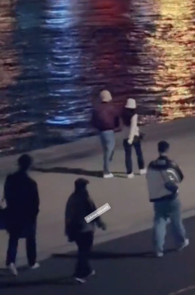 프랑스 파리 세느 강변에서 데이트를 즐기는 뷔와 제니 추정 남녀 / 이하 트위터