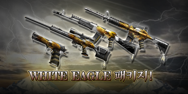 WHITE EAGLE 무기 시리즈는 흰 머리와 꼬리를 가진 독수리의 디자인으로 총기 어깨 견착대 아랫부분에 깃털 장식을 한 총기 6종이다.