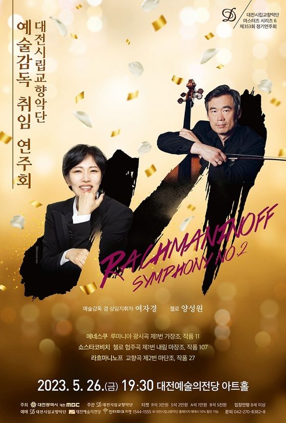 여자경 예술감독이 대전시민들에게 선보이는 첫 공연은 에네스쿠의 ‘루마니아 광시곡 제1번’, 첼리스트 양성원 협연의 쇼스타코비치의 ‘첼로 협주곡 제1번’, 라흐마니노프 ‘교향곡 제2번’이다.