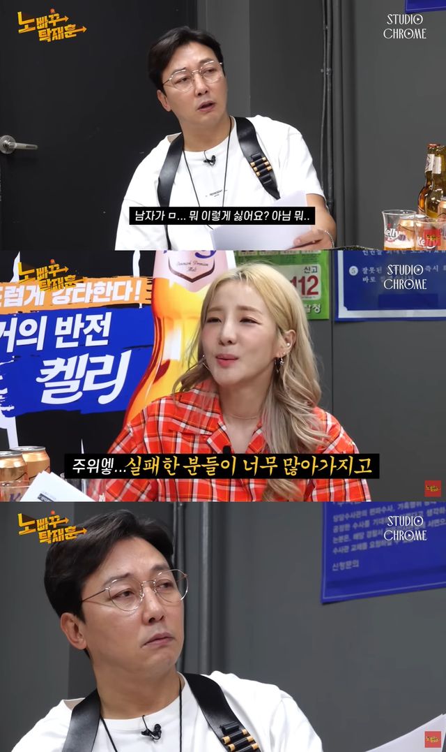 그러자 탁재훈은 "남자가 뭐 이렇게 싫어요? 아니면 뭐"라고 되물었는데, 산다라박은 "주위에 실패한 분들을 너무 많이 봐가지고"라며 웃었다.