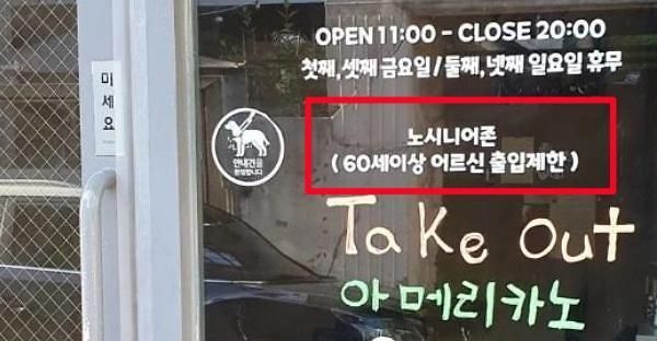 在韩国,随着对限制婴幼儿和儿童出入的“无儿童区”(No Kids Zone)范围逐渐扩大,也出现了限制中老年人进入的"无老年区(No Senior Zone)"。