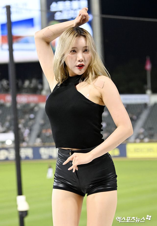 (엑스포츠뉴스 잠실, 김한준 기자) 19일 오후 서울 송파구 잠실야구장에서 열린 '2023 신한은행 SOL KBO리그' 한화 이글스와 LG 트윈스의 경기, LG치어리더 이진이 멋진 공연을 선보이고 있다.