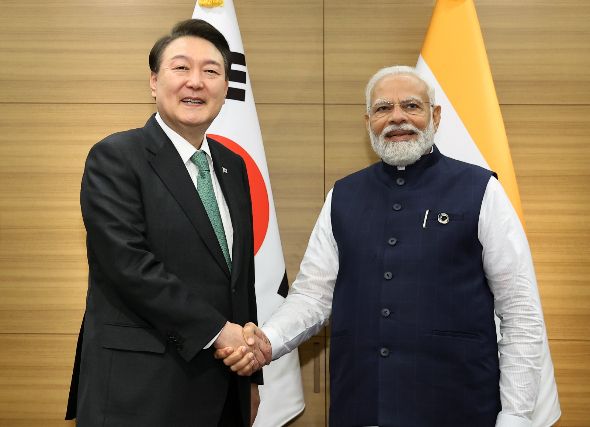 윤 대통령은 "민주주의 가치를 공유하는 한국과 인도가 연대해 지역과 세계 문제에 함께 대응해 나가자"고 말했고, 모디 총리는 "양국의 전략적 소통과 협력을 강화해 나가자"고 화답했다.