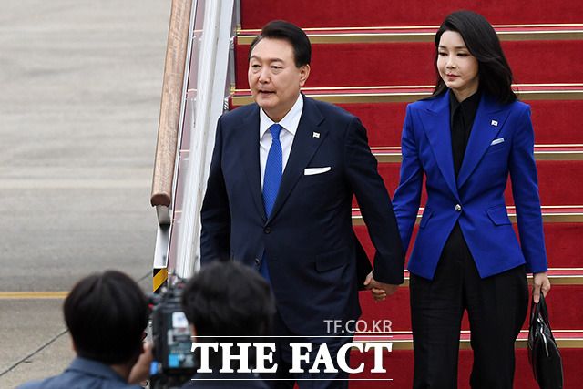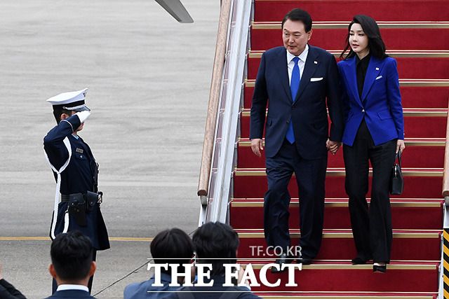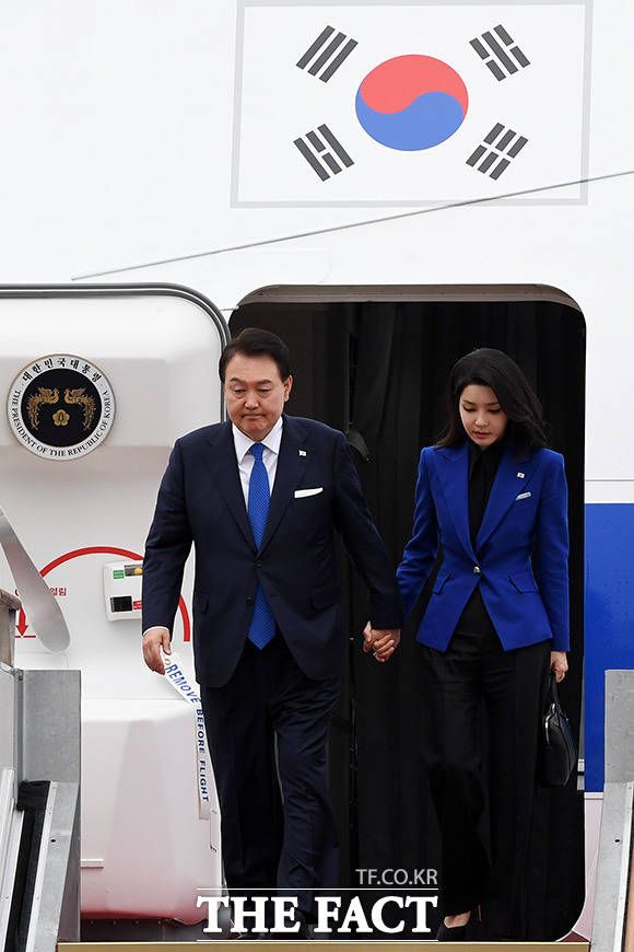 [더팩트ㅣ성남=남용희 기자] 윤석열 대통령과 부인 김건희 여사가 주요 7개국(G7) 정상회의 일정을 마치고 21일 오후 경기도 성남시 서울공항을 통해 귀국하고 있다.