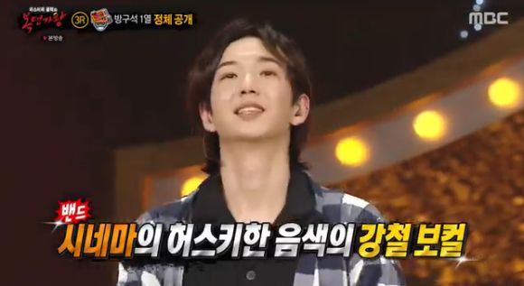'화관'이 77표로 압도적 승리를 거머쥔 가운데 가면을 벗은 '방구석 1열'의 정체는 '슈퍼밴드2' 준우승 시네마의 보컬 임윤성이었다.