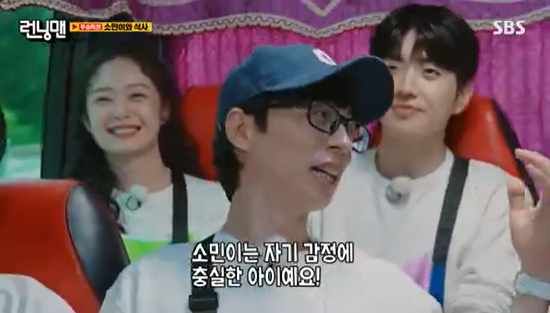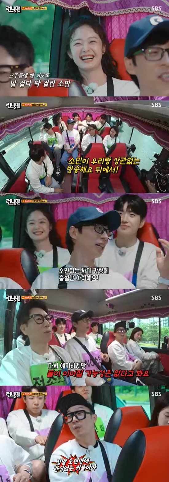 이렇게 멤버들이 한창 이야기를 나누고 있던 때, 전소민은 버스 맨 뒷자리에서 강훈과 함께 따로 이야기를 하느라 바빴다. 이런 전소민의 모습을 본 김종국은 "지금 소민이는 우리랑 상관없는 방송을 하고 있다"고 말했고, 지석진도 "플러팅을 겁나 하고 있네"라고 놀렸다.