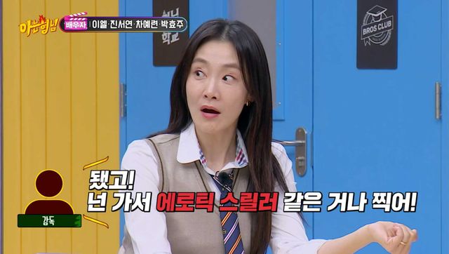 이엘은 "거기에 더 심한 소리를 하는 사람은 '넌 가서 에로틱 스릴러 같은 거나 찍으라'고도 하고 비수를 많이 던지셨다"고 말해 충격을 안겼다. 이수근은 “쓰지도 않을 거면서 쓸데없는 이야기를 하냐”며 이해할 수 없다는 반응을 보였다.