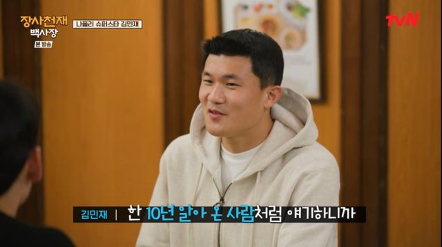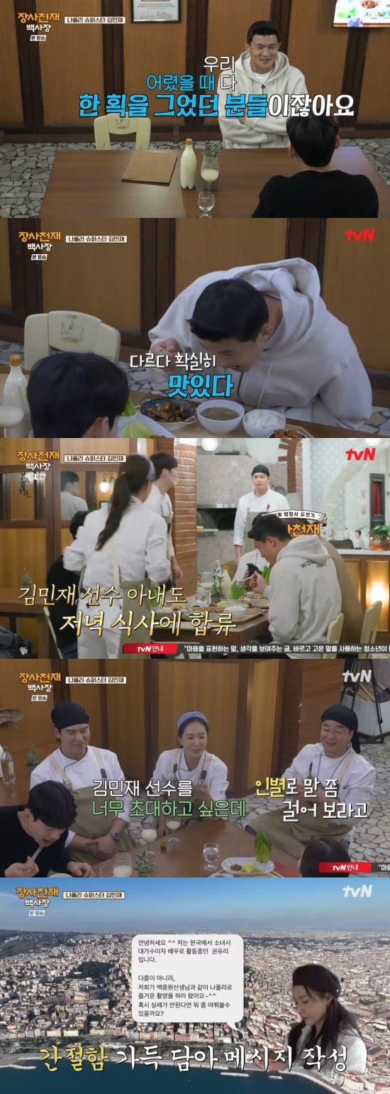 21일 방송된 tvN '장사천재 백사장' 8회에서는 나폴리의 축구 영웅 김민재의 방문이 그려졌다.