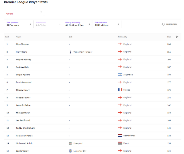 시어러는 프리미어리그 통산 260골을 터트려 오랜 기간 확고부동의 1위를 달리고 있었다. 그런데 케인이 무섭게 쫓아오는 중이다. 케인은 20일 브렌트퍼드전에서도 한 고을 추가해 211골을 기록하며 2위를 기록하고 있다. 현역 선수 중엔 리버풀 포워드 모하메드 살라가 139골을 넣어 그 다음(은퇴 선수 포함 14위)인 터라 시어러의 기록을 넘볼 선수는 오직 케인인 셈이다. 시어러 입장에선 49골 간격이 있지만 케인의 현 상승세대로라면 2~3년 뒤에 추월당할 수 있는 기록이다.