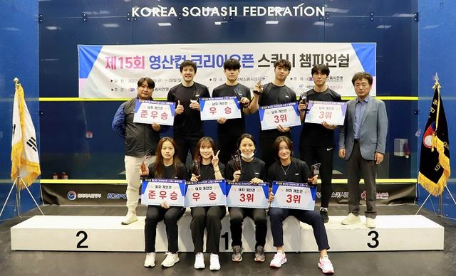 제15회 코리아 시니어 오픈 스쿼시챔피언십 수상자들. 대한스쿼시연맹 제공