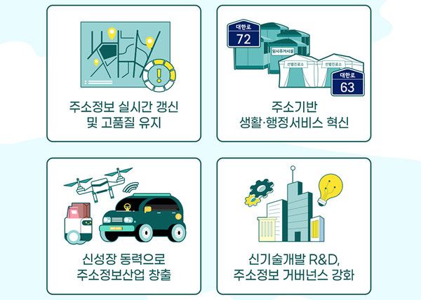 주요내용은 주소정보 인프라를 2배 이상 확충해 촘촘한 주소체계를 구축하고 주소정보 활용 확산을 통해 연간 3조 3000억 원의 비용편익을 창출하며, 2030년까지 1조 원 규모의 주소정보산업을 육성할 계획이다.