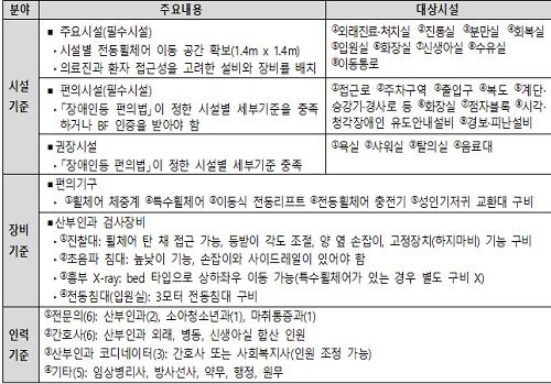 또한, 장애친화 산부인과 코디네이터를 두고 외래, 분만, 입원 등 진료 전 과정에서 여성장애인에게 필요한 서비스가 제공되도록 지원한다.