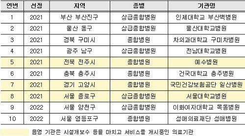 전북 예수병원과 건강보험공단 일산병원에 이어 세 번째이며, 나머지 인제대병원, 부산백병원, 울산대병원, 이대목동병원 등 7개 의료기관도 시설공사를 마치고 순차적으로 개소할 예정이다.