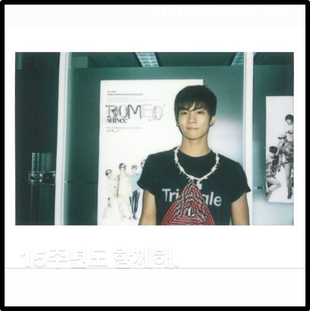 이날 샤이니 멤버 민호는 고 종현의 사진을 공유하며 "15주년도 함께해"라고 애틋함을 전했다.
