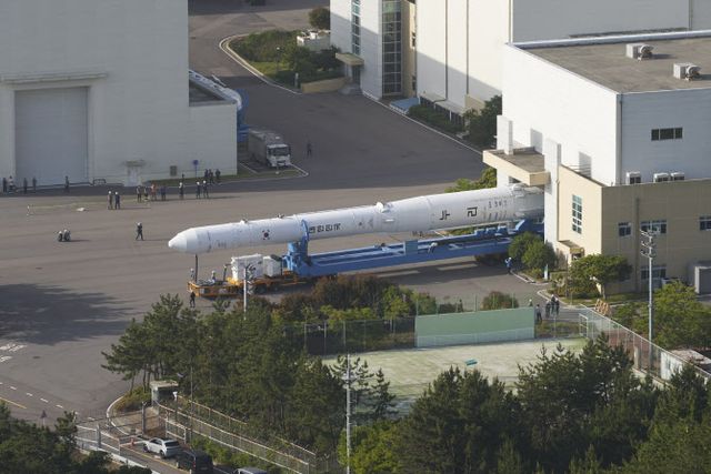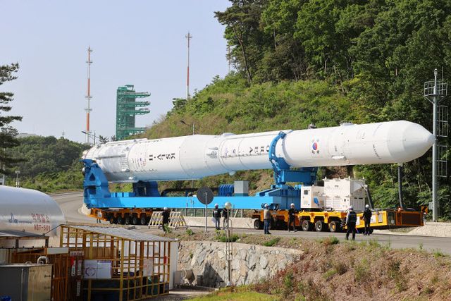 누리호는 이날 무인 특수이동 차량(트랜스포터)에 실려 나로우주센터 내 발사체종합조립동에서 제2발사대로 이송됐다. 누리호는 기립 준비 과정을 거쳐 오전 중에 발사대에 기립한다.