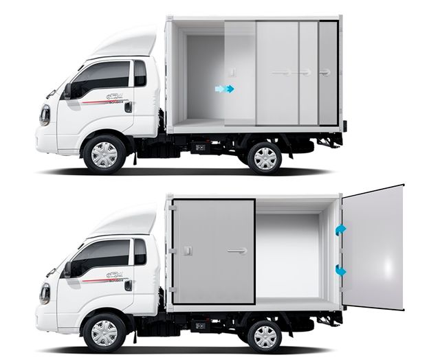 현재 시중에서 볼 수 있는 소형 트럭의 적재함 측면 문은 대부분 양쪽으로 밀어 여는 방식만 제공되고 있어 일정 크기 이상의 물건을 하차하기 위해서는 후방 문을 이용해야만 했다.