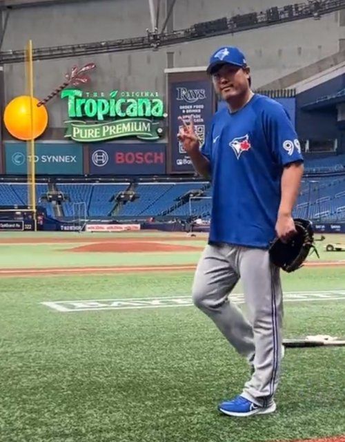 토론토는 23일(한국시간) 구단 공식 소셜미디어(SNS)에 류현진의 동영상과 함께 한국어로 “안녕하세요. 친구”라고 적어 게시물을 올렸다. 동영상 속 류현진은 탬파베이 레이스의 홈구장 트로피카나필드에서 훈련복 차림으로 한 손에는 글러브를 들고, 다른 한 손으로는 ‘브이(V)’ 포즈를 취한 채 미소 짓고 있다.