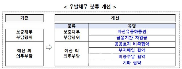 행안부는 그동안 지자체가 ‘보증채무부담행위’와 ‘예산 외 의무부담’에 대한 관리를 누락하거나 분류를 잘못하는 경우가 많았다고 지적했다. 이에 일부 자치단체는 우발채무가 포함된 사업의 공사비·분양률 점검 등 사업관리가 미흡하여 과중한 재정부담을 초래하기도 했다는 설명이다.