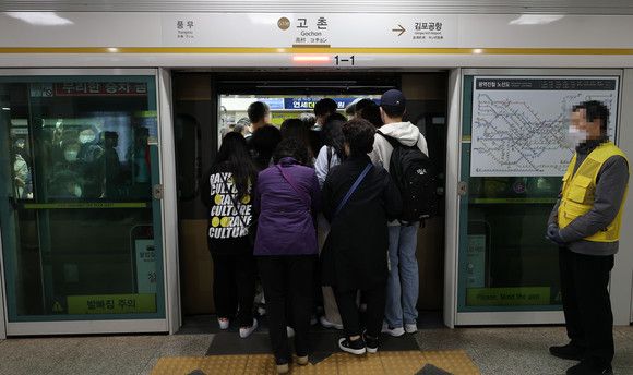 김포골드라인에 탑승하는 승객들. ⓒ 연합뉴스