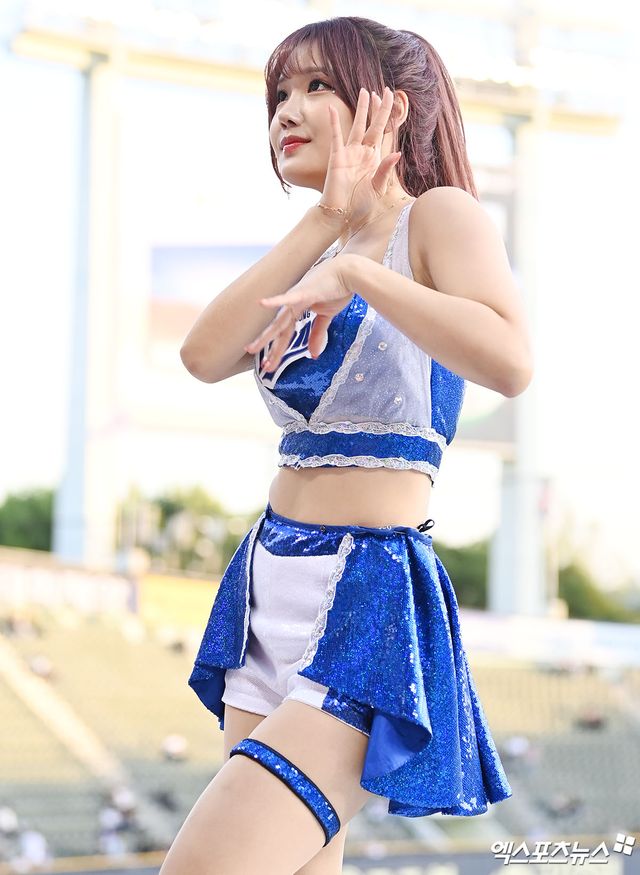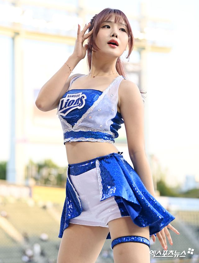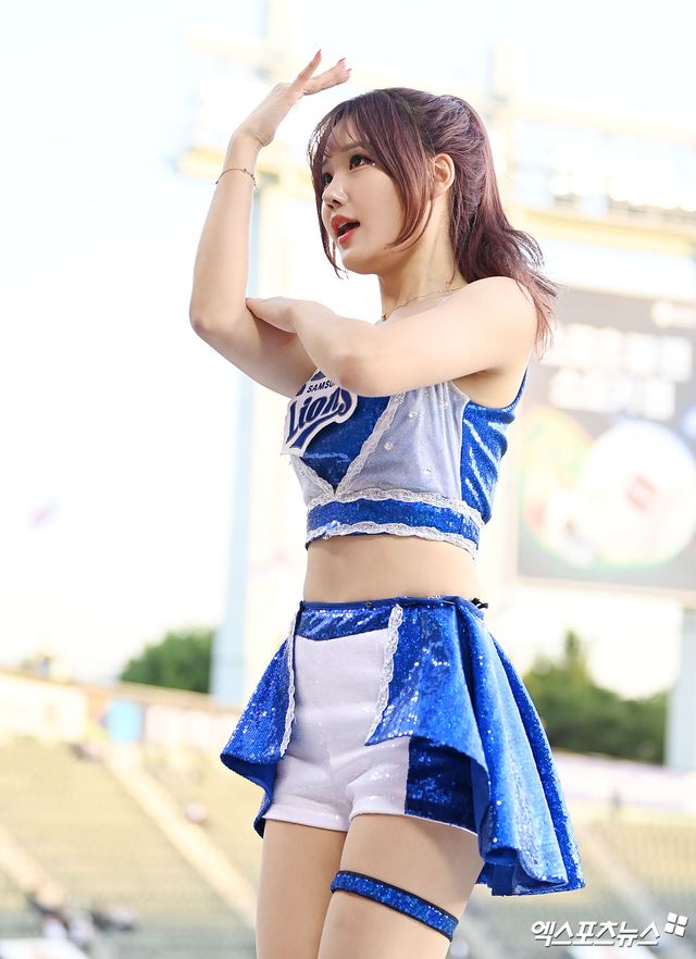 (엑스포츠뉴스 잠실, 김한준 기자) 23일 오후 서울 송파구 잠실야구장에서 열린 '2023 신한은행 SOL KBO리그' 삼성 라이온즈와 두산 베어스의 경기, 삼성 치어리더 최홍라가 멋진 공연을 선보이고 있다.