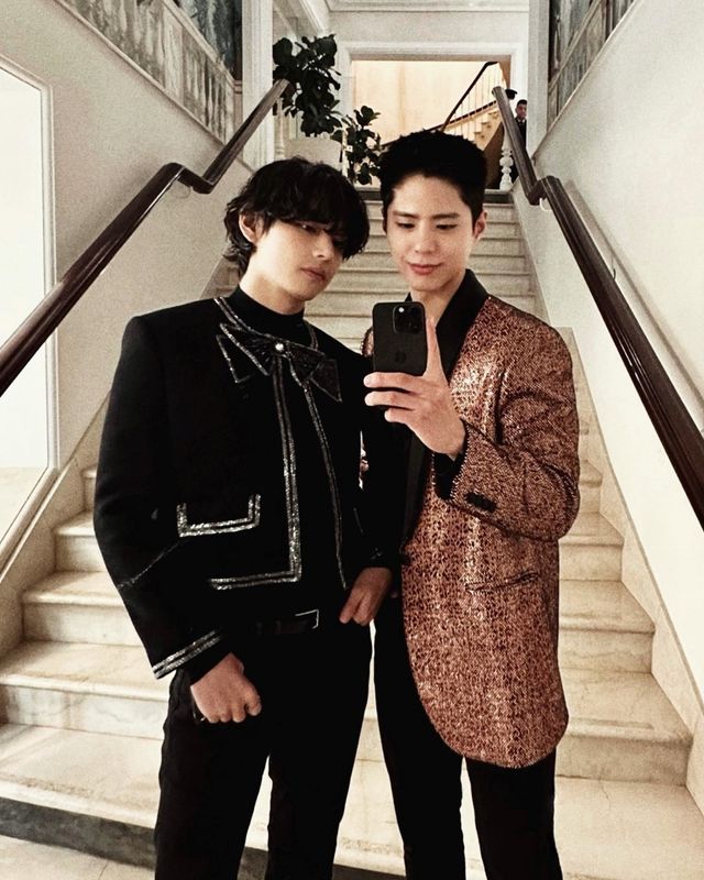 24일 박보검과 뷔는 각자의 인스타그램에 명품 브랜드 셀린느를 언급하며 다수의 사진을 개재했다. 특히 눈길을 끄는 것은 프랑스에서 포착된 박보검과 뷔의 투샷.