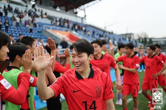 김은중 감독이 이끄는 대한민국 20세 이하(U-20) 축구 국가대표팀은 23일 오전 3시(한국시간) 아르헨티나 멘도사에 위치한 에스타디오 말비나스 아르헨티나스에서 열린 2023 국제축구연맹(FIFA) 20세 이하(U-20) 아르헨티나 월드컵 조별리그 F조 1차전에서 프랑스를 2-1로 제압했다. 이로써 한국은 조 선두로 올라섰다.