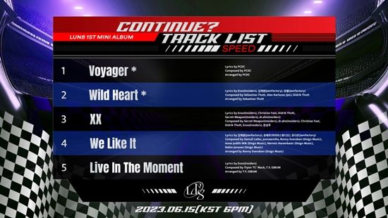 루네이트(진수·카엘·타쿠마·준우·도현·이안·지은호·은섭)는 23일 오후 8시 공식 SNS에 첫 번째 미니앨범 ‘CONTINUE?’(컨티뉴?)의 트랙리스트 이미지를 공개했다.