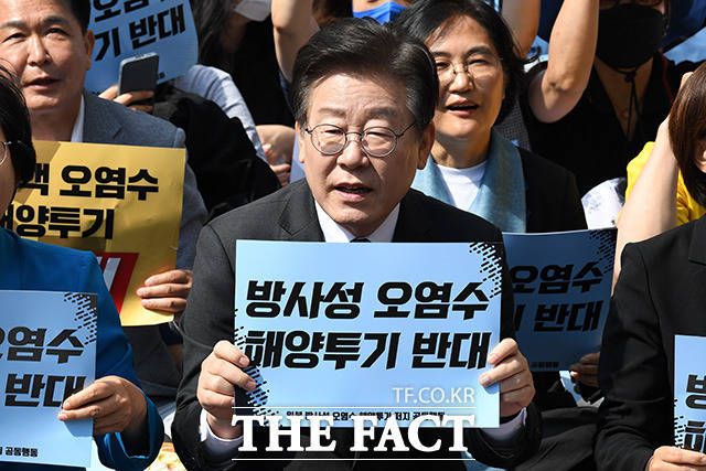 야당은 24일 "헌법 정신에 어긋나는 명백한 위헌적 발상"이라고 강하게 반발했다. 여소야대의 국회 상황을 고려했을 때 정부여당의 집시법 개정 추진이 국회 문턱을 넘기는 어려울 것으로 보인다. 이재명 더불어민주당 대표가 지난 20일 오후 서울 중구 한국프레스센터 앞에서 일본 후쿠시마 방사성 오염수 해양 투기 반대 손피켓을 들고 있는 모습. /남용희 기자